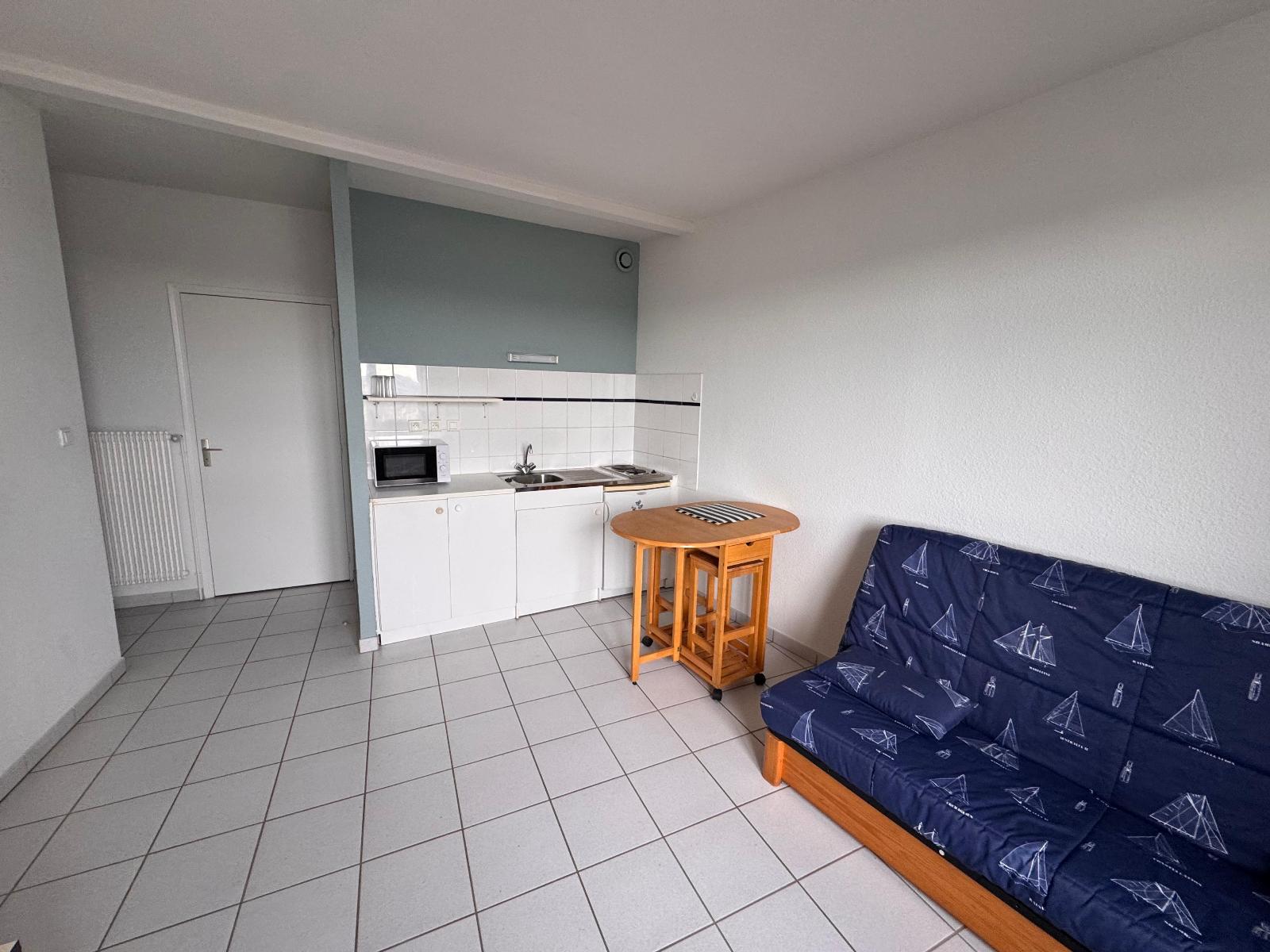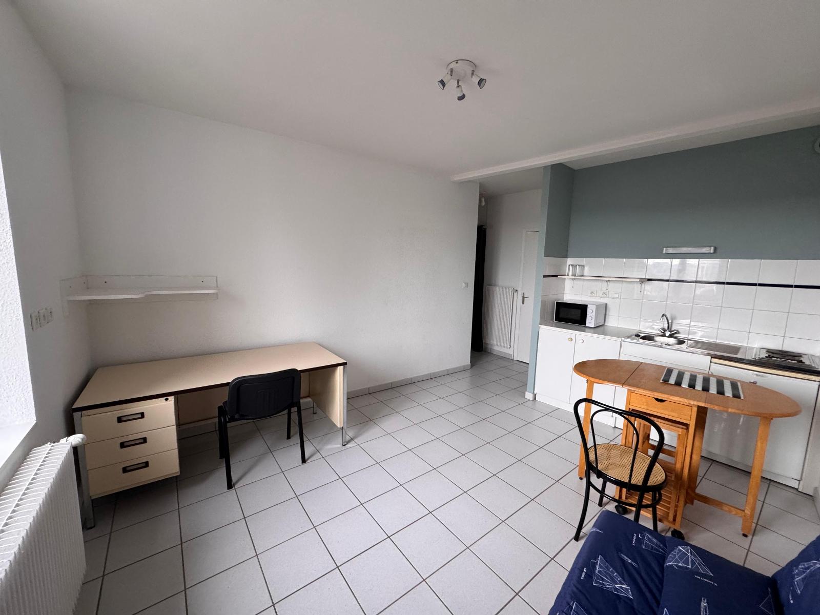 Studio au rez-de- chaussée mesurant 22,10 m2 composé d’une pièce principale , d’une salle d’eau avec WC