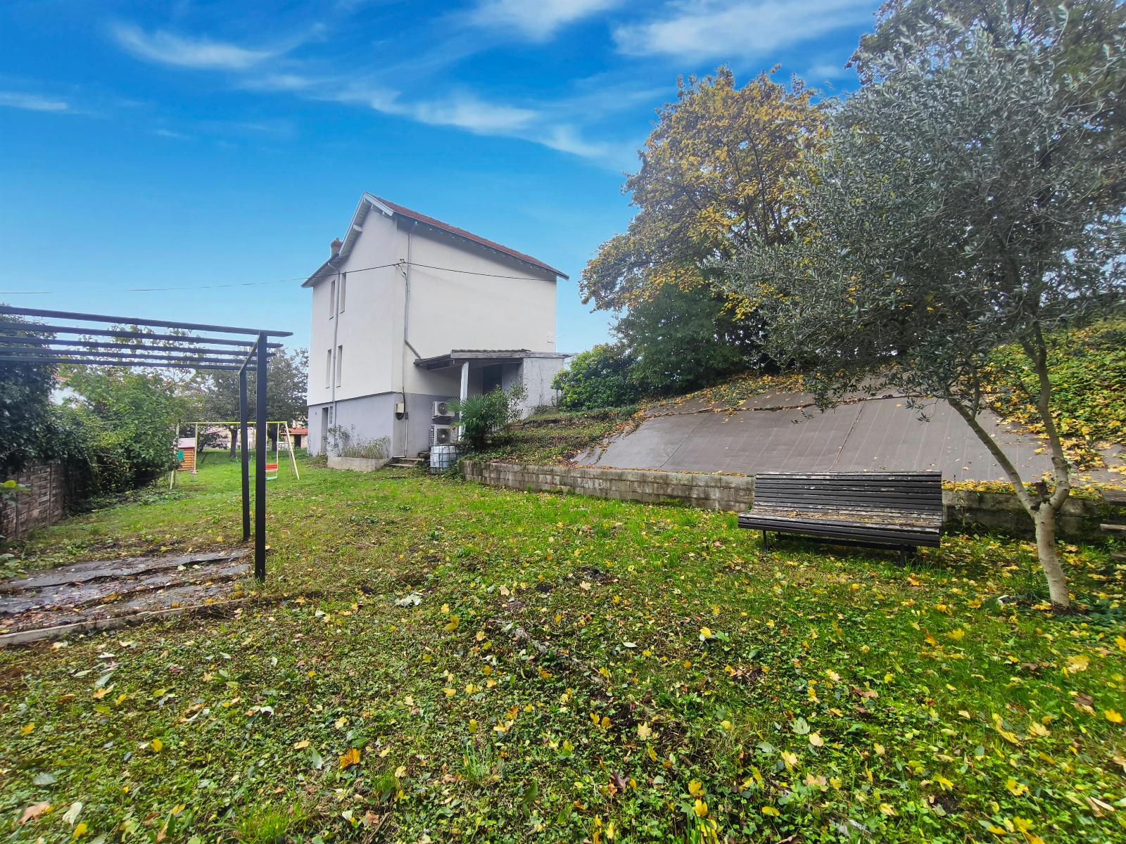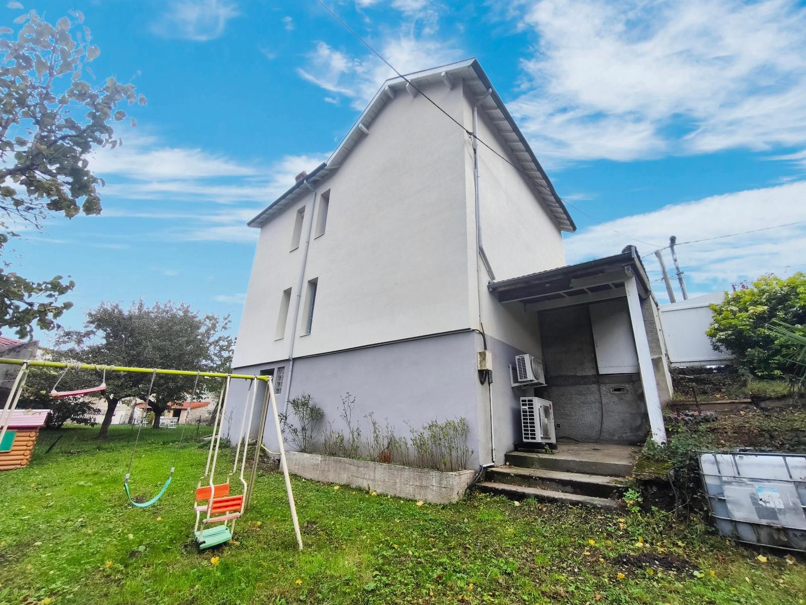 Charmante maison de type 4 d’une surface habitable d’environ 103.46m² sur une parcelle de 840 m², 3 chambres, possibilité de deux chambres supplémentaires car sous-sol aménageable de 56 m² avec un atelier, une grande terrasse, un jardin et un grand parking de 8 à 10 stationnements (possibilité de louer les emplacements environ 30 €). Façade récente avec isolation par l’extérieur.