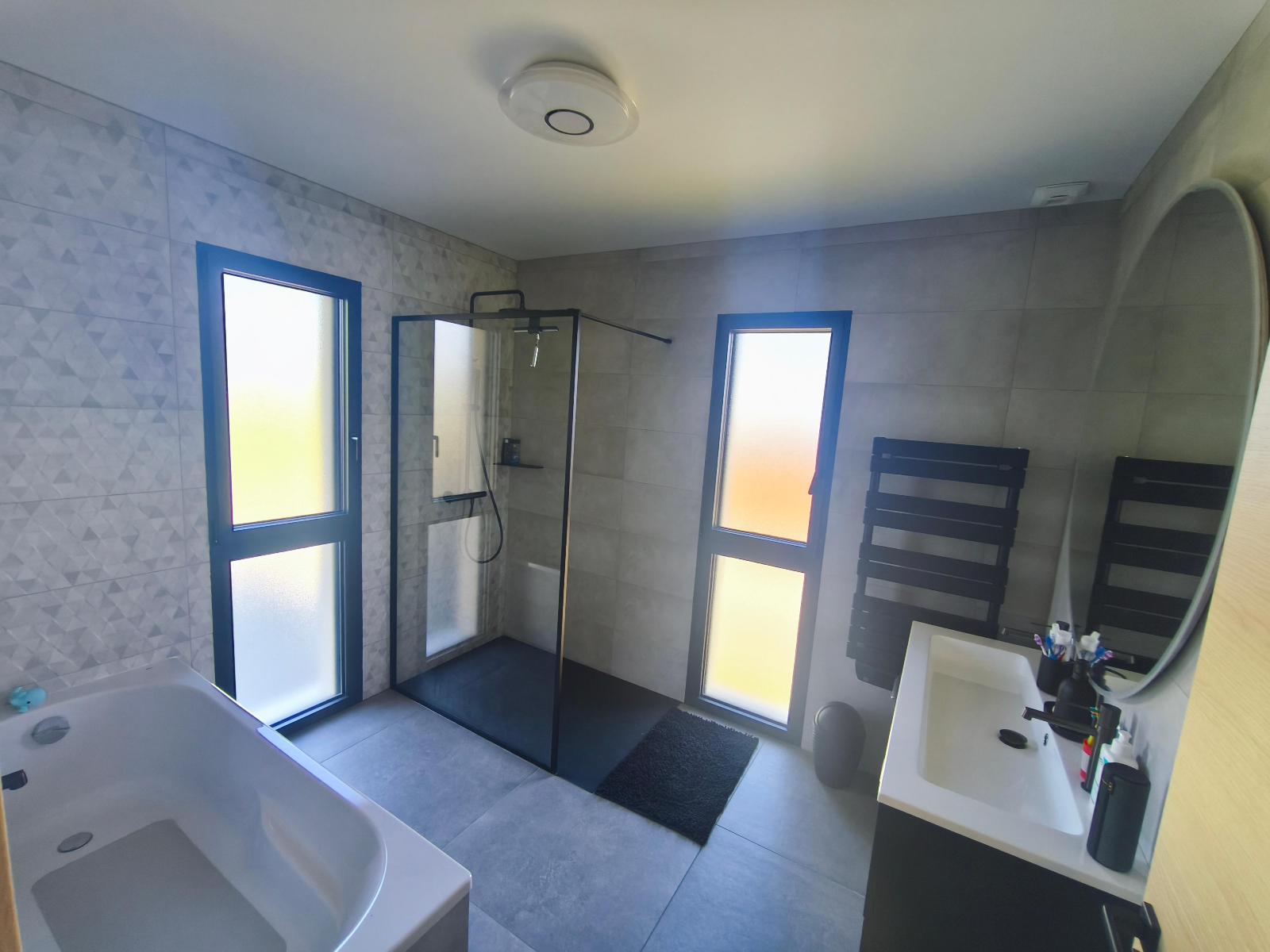 Mode de chauffage : Individuel électrique par pompe à chaleur air-eau et air-air, huisseries : double vitrage aluminium, assainissement : tout à l’égout.